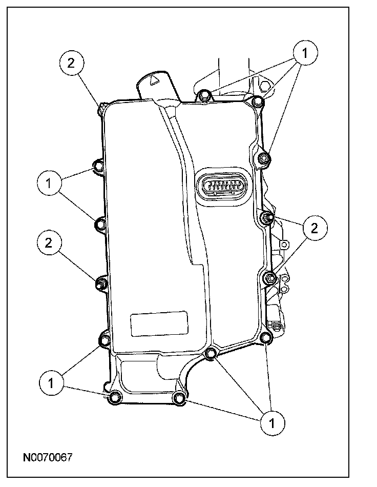 13. CAUTION: Inspect the 20-pin solenoid body connector seal to make sure that the seal is on the inside of the main control cover. Transmission fluid leak will occur.