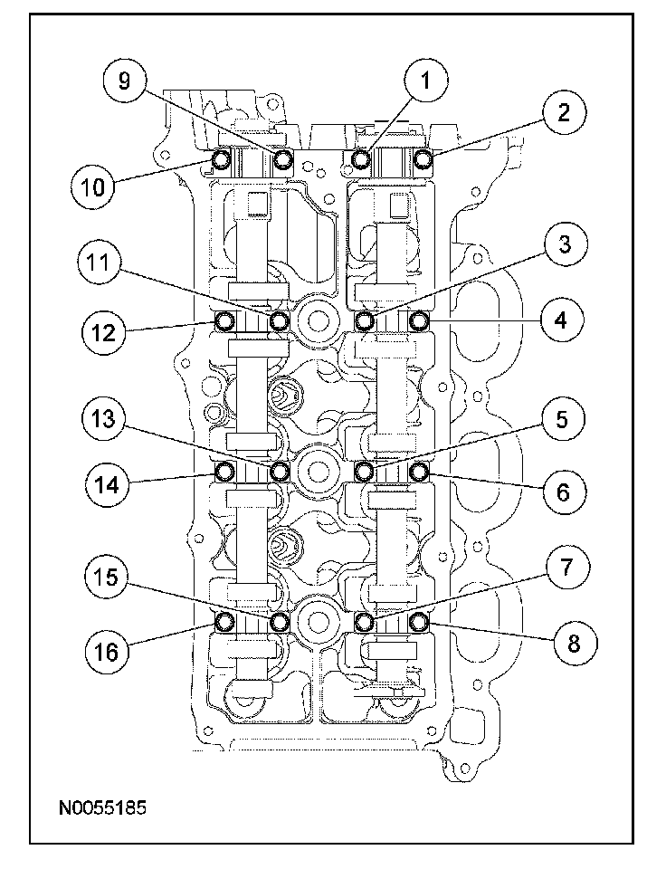 LH Camshaft Bearing Cap Bolts 10 Nm (89 lb-in)