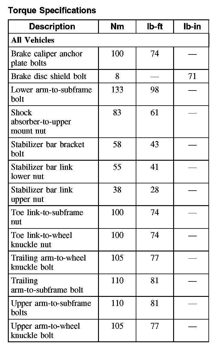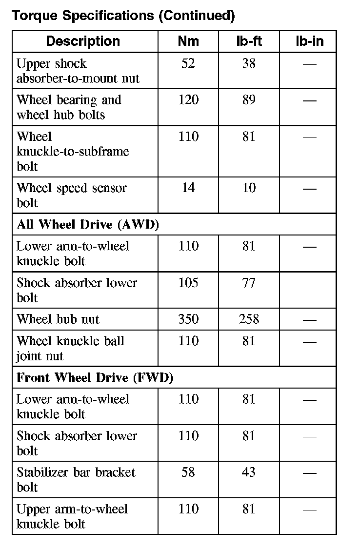 Torque Specifications
