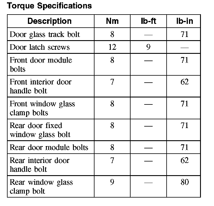 Torque Specifications: