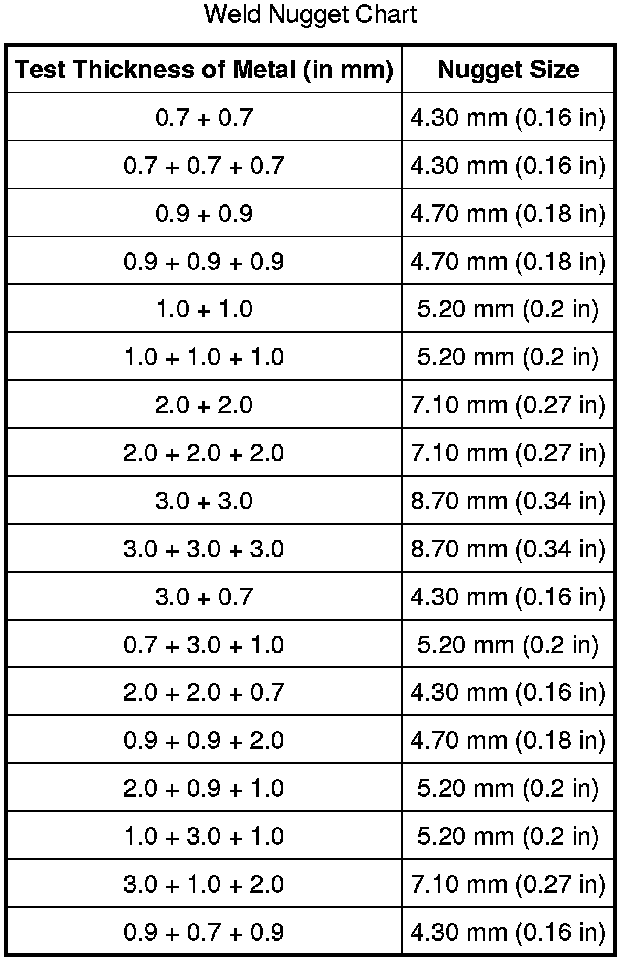 Weld Nugget Chart: