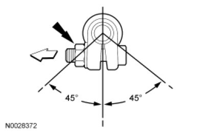 5. Position both adjusting sleeve clamp openings downward within 45 degrees of vertical. Tighten the nuts to 55 Nm (41 lb-ft).