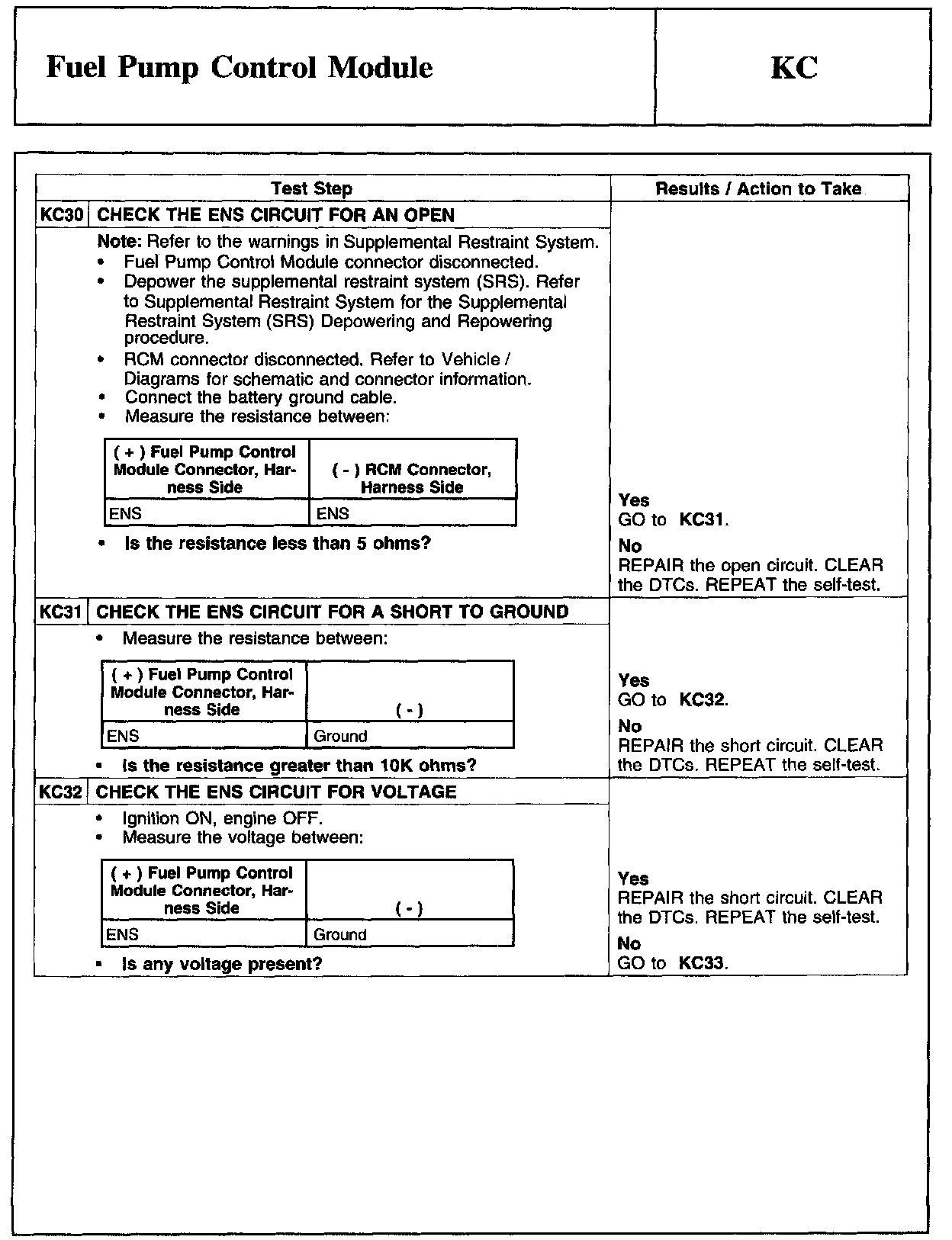 PINPOINT TEST KC: FUEL PUMP CONTROL MODULE