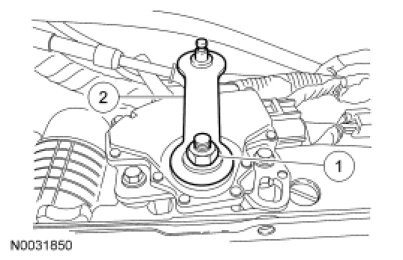 7. NOTICE: Tightening one bolt before tightening the other may cause the Transmission Range (TR) sensor to bind or become damaged.