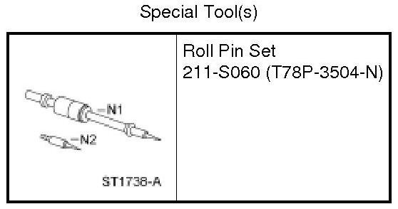 6. Using the Roll Pin Set, remove the manual valve detent lever shaft retaining pin.