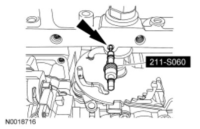 3. Remove the transmission fluid pan, gasket and filter. For additional information, refer to Fluid Pan, Gasket and Filter TorqShift.