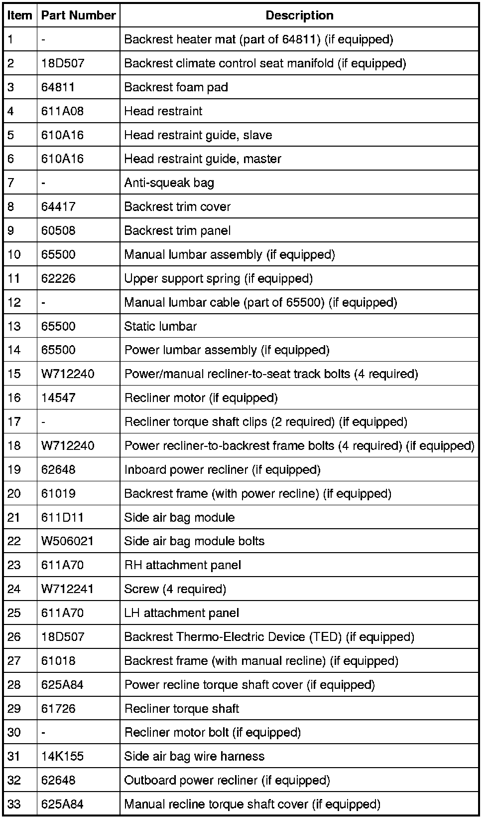 NOTE: Manual recliners without fold-flat backrest are serviced with the backrest frame. Power recliners without fold-flat backrest are serviced separately.