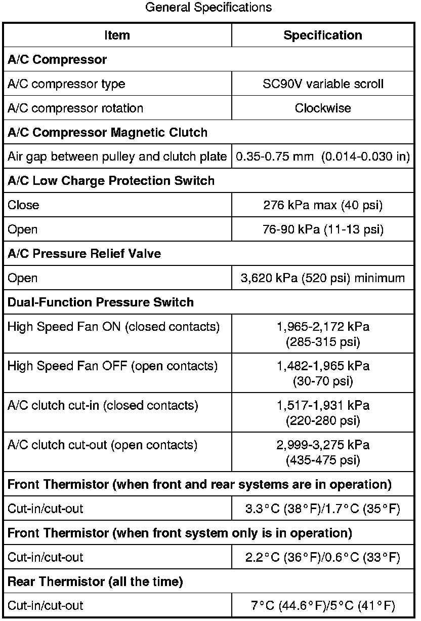 The General Specifications apply to hybrid vehicles only.