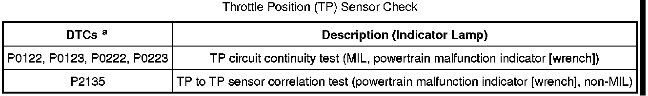 a Correlation and range/performance - sensor disagreement between processors internal to the PCM, TP inconsistent with requested throttle plate position. Monitor execution is continuous. Monitor false detection duration is less than 1 second to register a concern. Refer to Diagnostic Trouble Code (DTC) Charts and Descriptions Diagnostic Trouble Code Descriptions for additional DTC information.