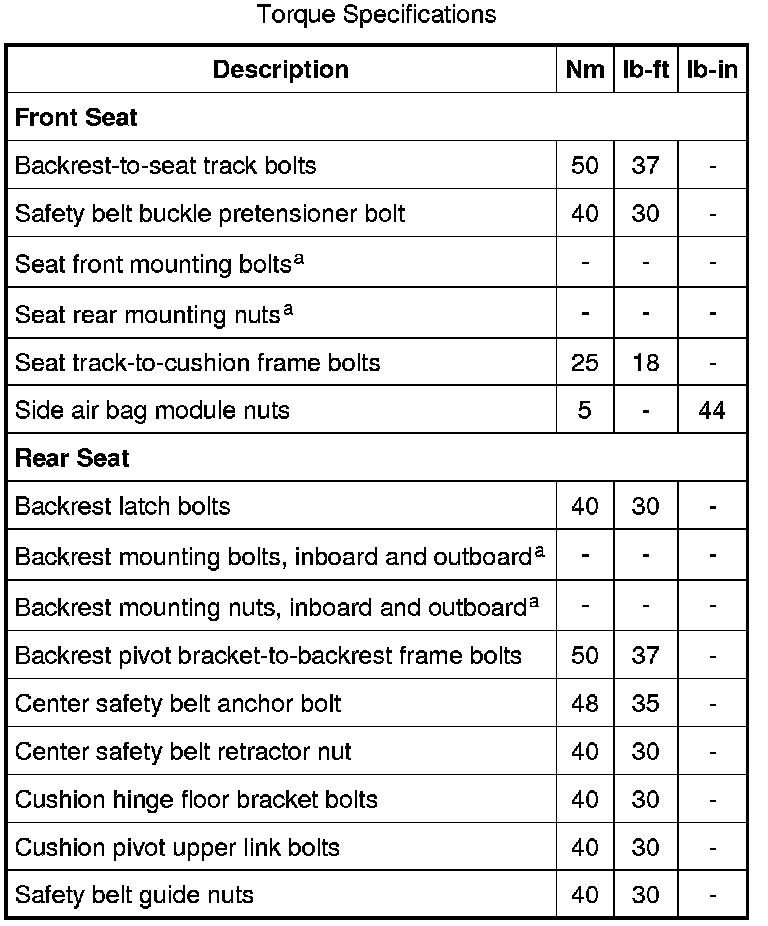 Seats: Specifications