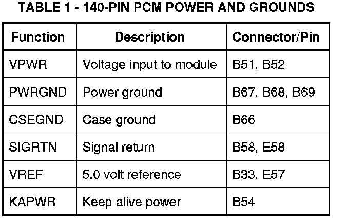 Table 1 - 140-Pin PCM Power And Grounds: