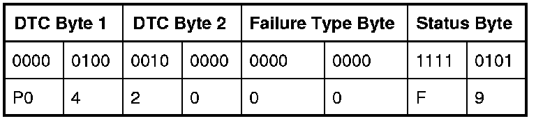 A list of failure type bytes is defined by SAE J2012 but is not described here because the PCM does not use the failure type byte.