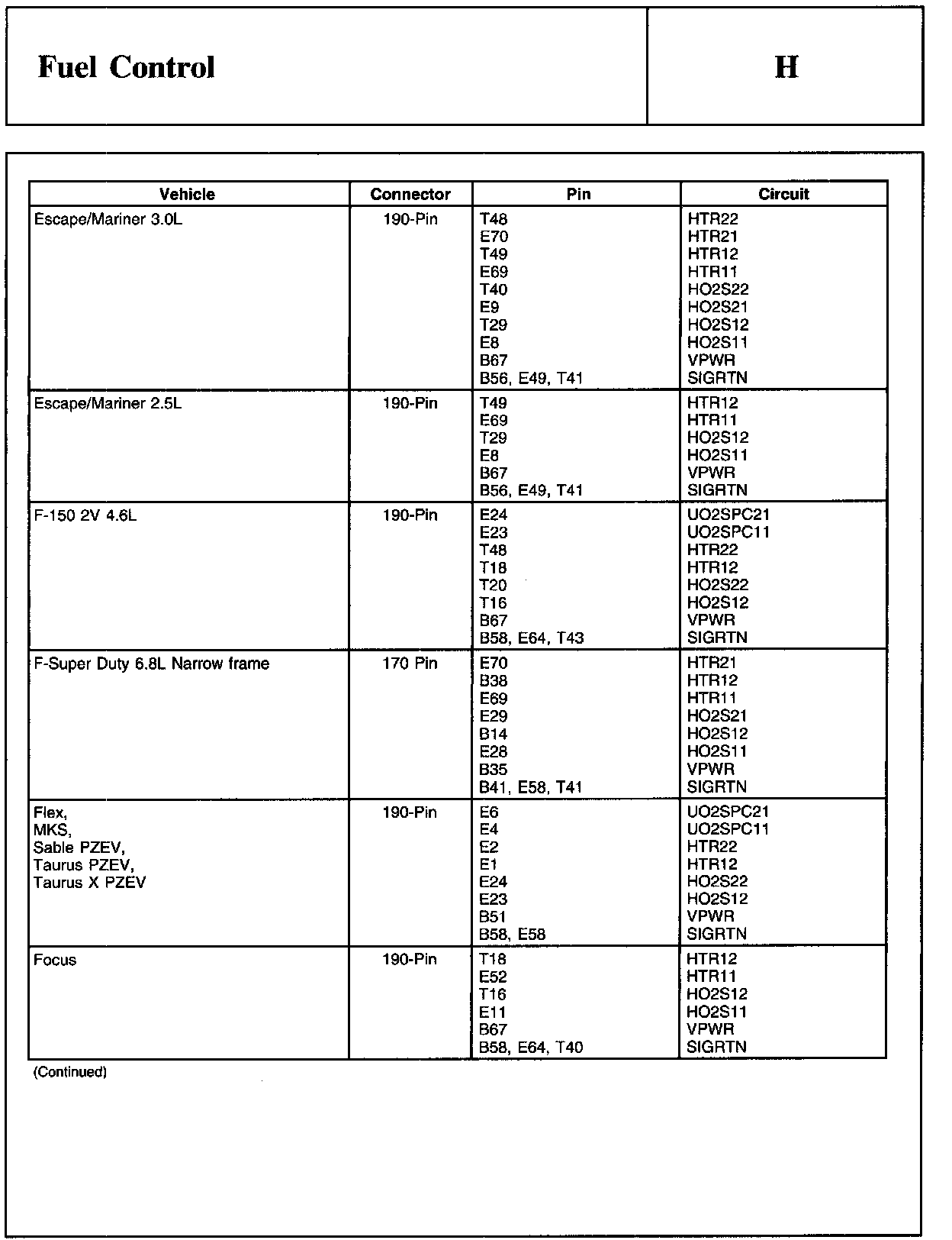 Home >> Ford >> 2009 >> Escape 2WD L4-2.5L >> Repair and Diagnosis >> Powertrain Management >> Computers and Control Systems >> Testing and Inspection >> Pinpoint Tests >> H - Fuel Control