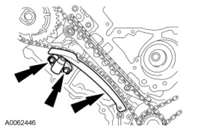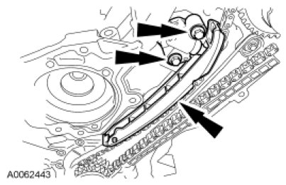 Position the LH and RH timing chain guides and install the 4 bolts.