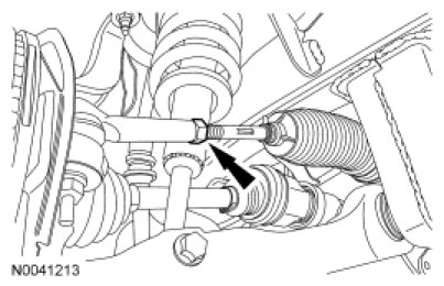 7. NOTICE: Make sure to hold the tie-rod end stationary while tightening the nut or damage to the steering gear bellows can occur.