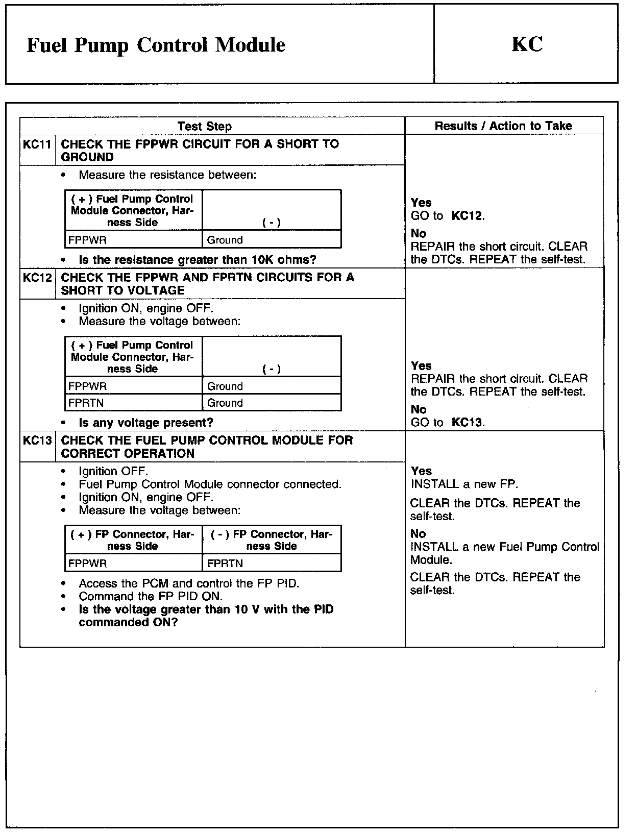 PINPOINT TEST KC: FUEL PUMP CONTROL MODULE