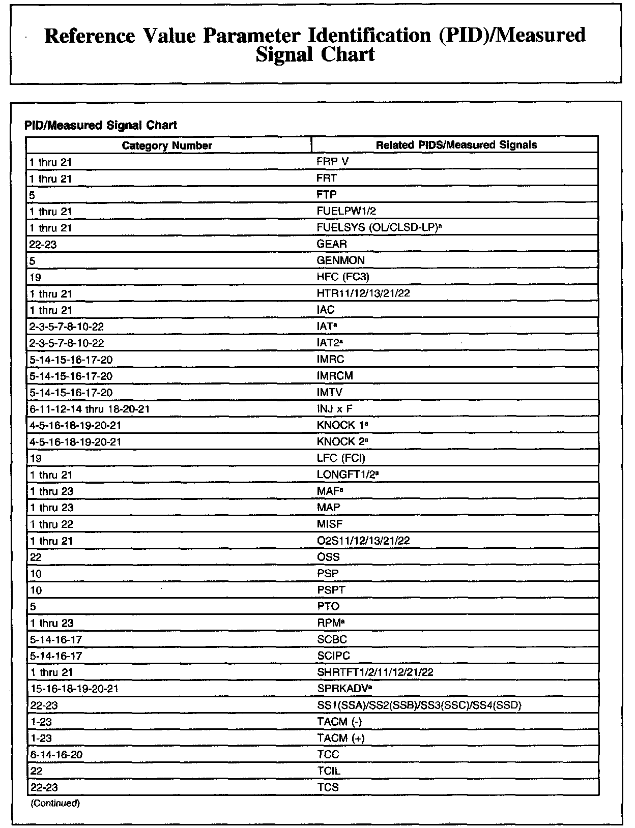 Reference Value Parameter Identification (PID)/Measured Signal Chart