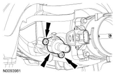 1. Using a suitable heat gun, apply heat to the top of the Electronic Throttle Body (ETB) until the top TP sensor bolt ear reaches approximately 55°C (130°F), this should take no more than 3 minutes using a 1100-watt heat gun. The heat gun should be about an 25.4 mm (1 in) away from the ETB.