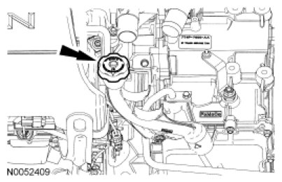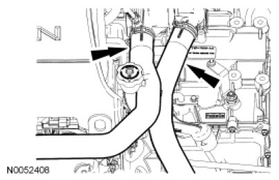 9. Position aside the coolant hoses from the transmission fluid filler tube.