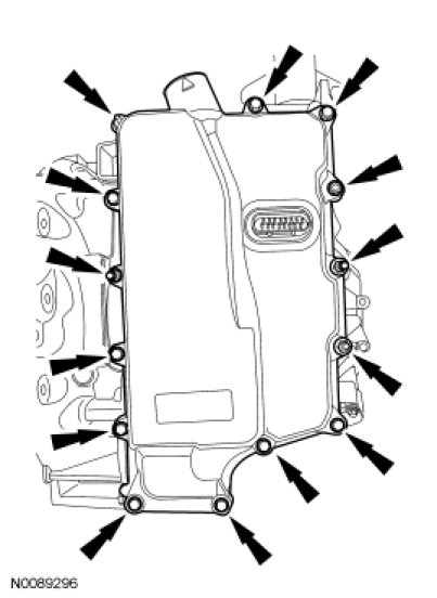 13. NOTICE: Inspect the 20-pin solenoid body connector seal to make sure that the seal is on the inside of the main control cover or a transmission fluid leak will occur.