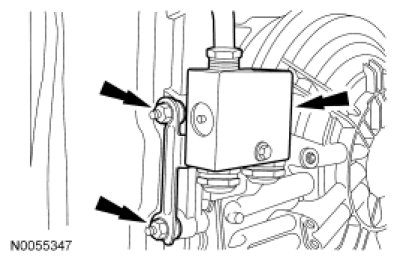 15. Position the transmission fluid cooler thermal bypass valve and transmission fluid cooler tube assembly in place and install the 2 nuts.