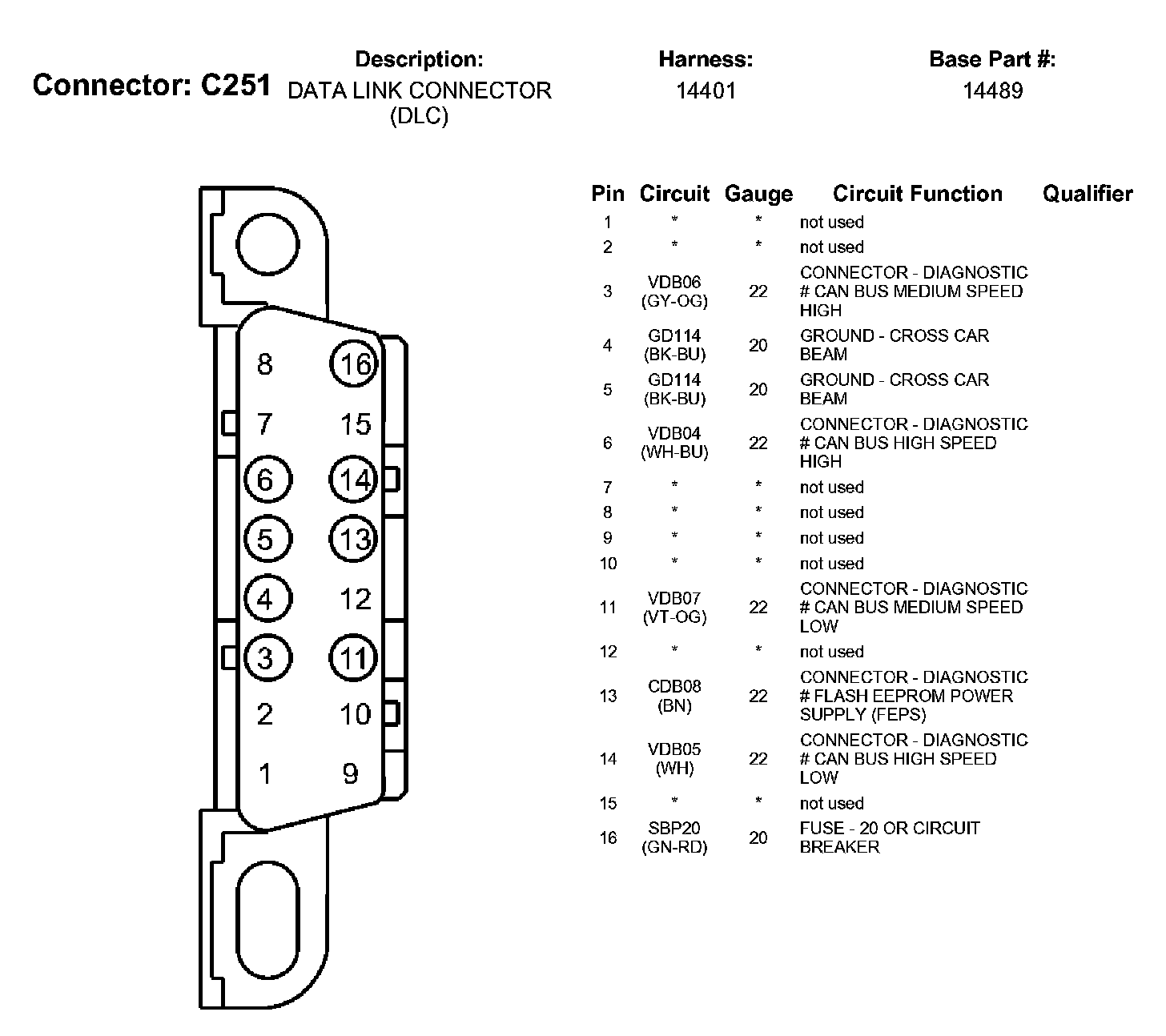 Data Link Connector: Diagrams