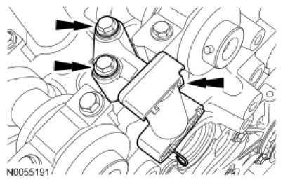 Install the RH secondary timing chain tensioner and the 2 bolts.
