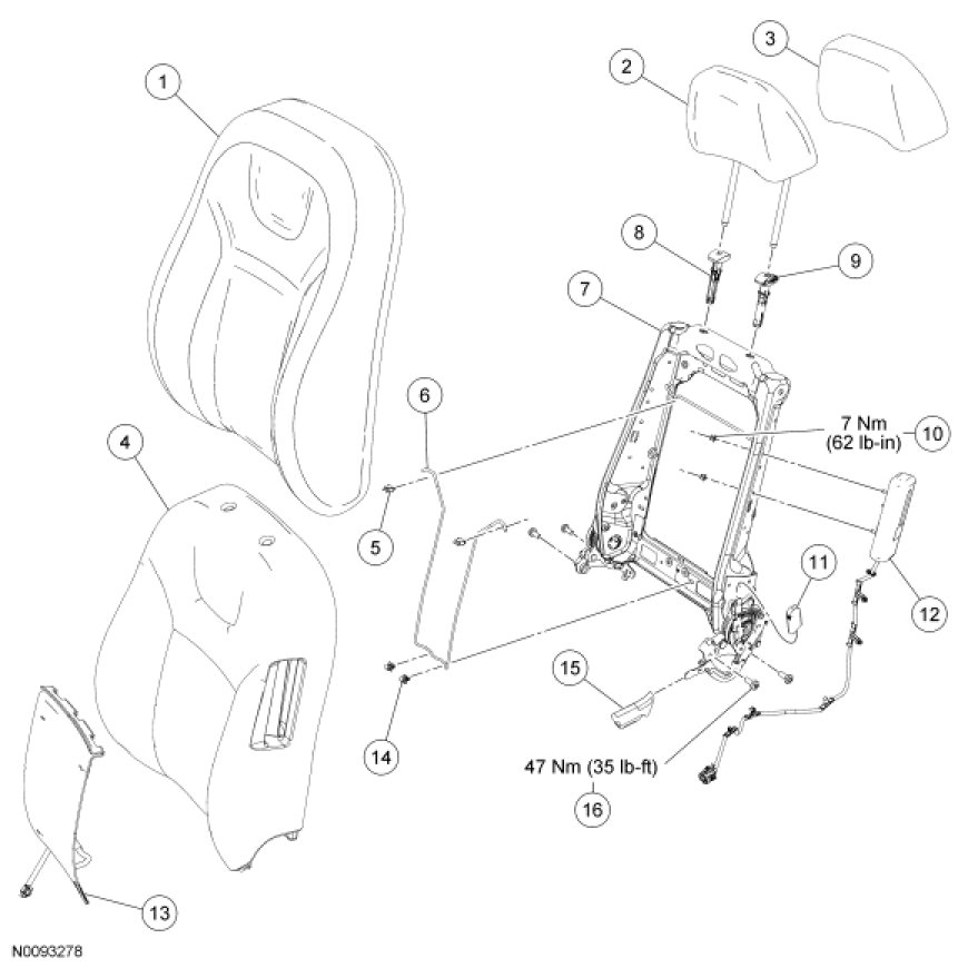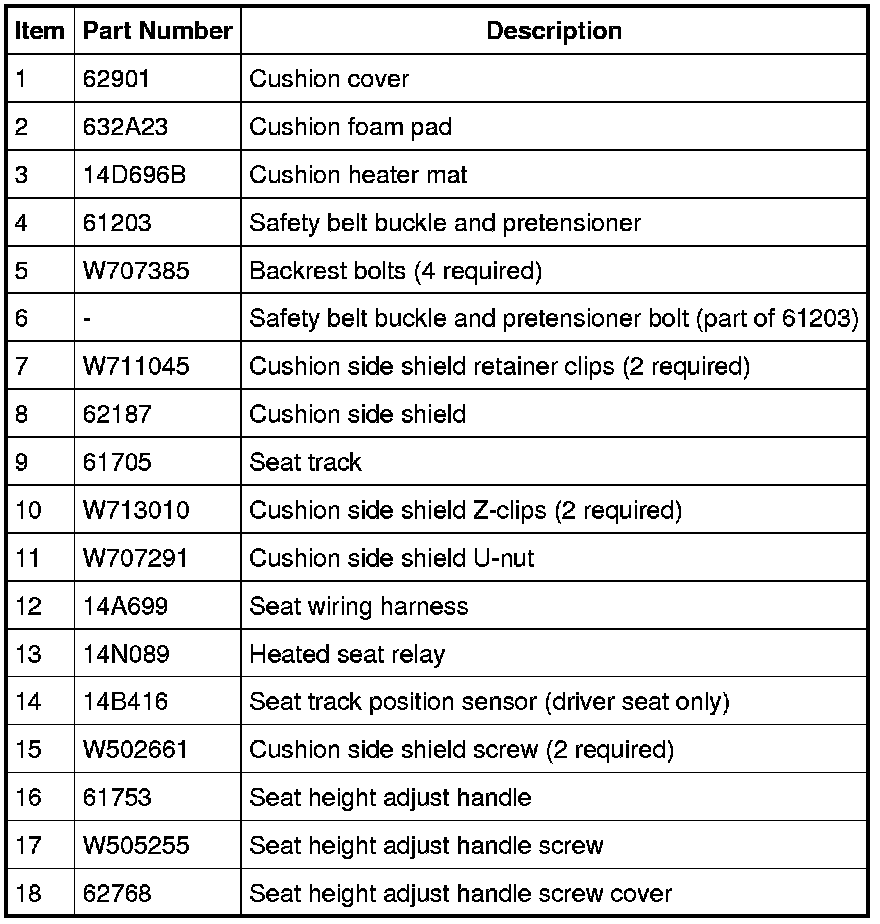 NOTE: LH seat with 4-way seat track shown, 2-way similar. For RH seat cushion Occupant Classification Sensor (OCS) system components, refer to Air Bag Systems.