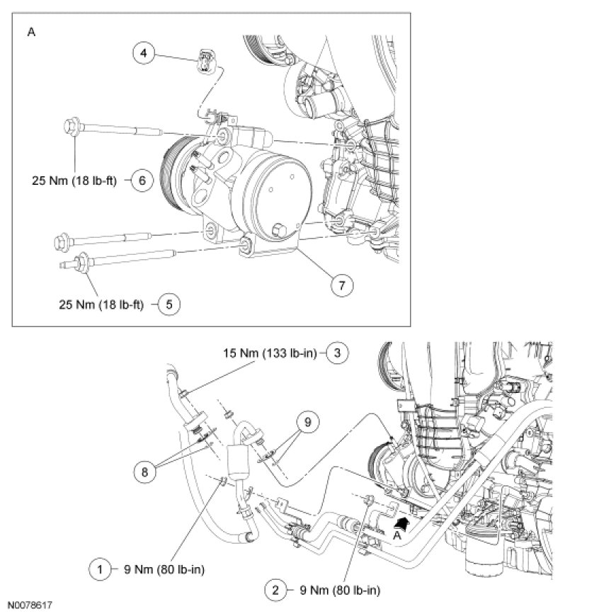 NOTICE: If installing a new air conditioning (A/C) compressor due to an internal failure of the old unit, the following procedures must be carried out to remove contamination from the A/C system. Failure to remove contamination from the A/C system, if present, will result in poor A/C system performance and/or damage to the new A/C compressor and other components.