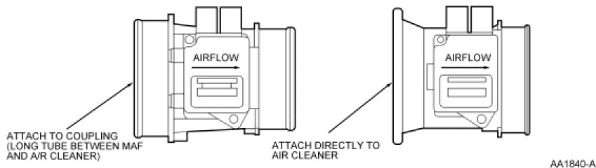 Diagram of Air Flow Through Throttle Body Contacting MAF Sensor Hot and Cold Wire (and IAT Sensor Wire Where Applicable) Terminals.