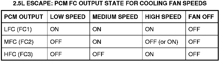 2.5L Escape: PCM FC Output State For Cooling Fan Speeds:
