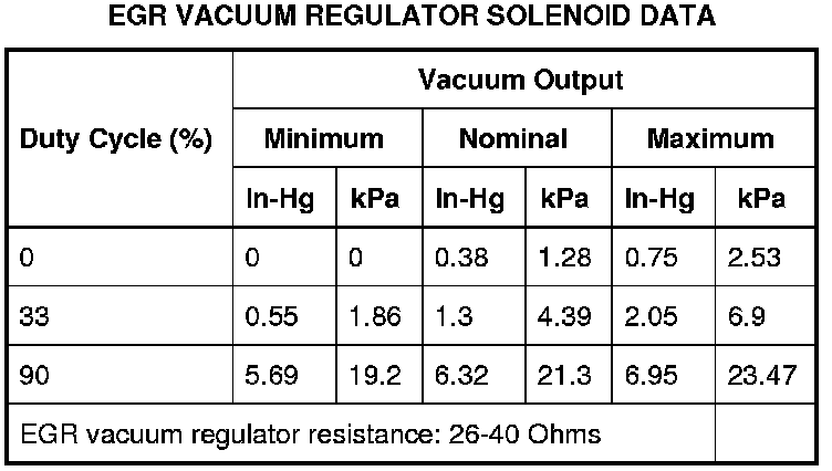 EGR Vacuum Regulator Solenoid Data: