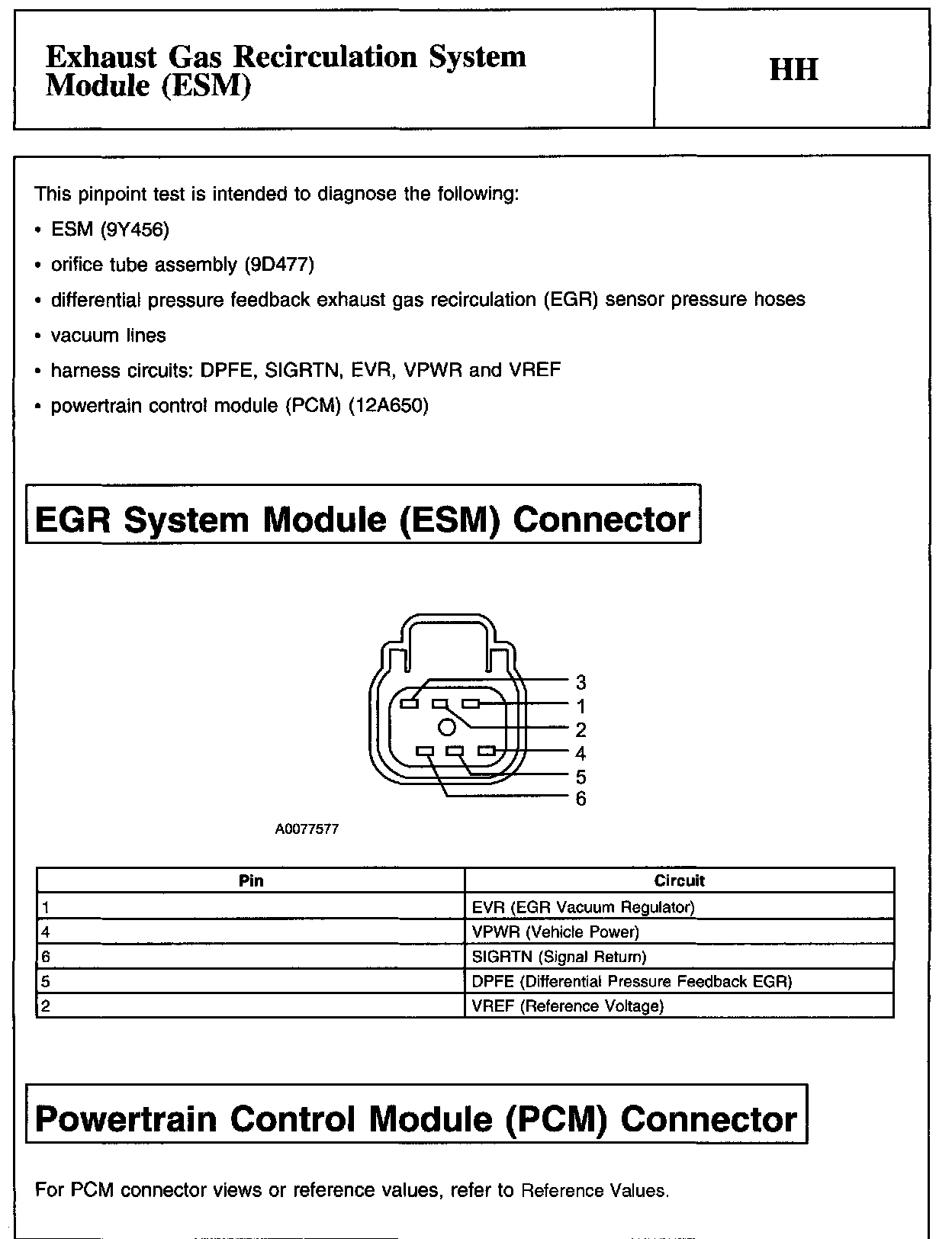 PINPOINT TEST HH: EXHAUST GAS RECIRCULATION SYSTEM MODULE (ESM)