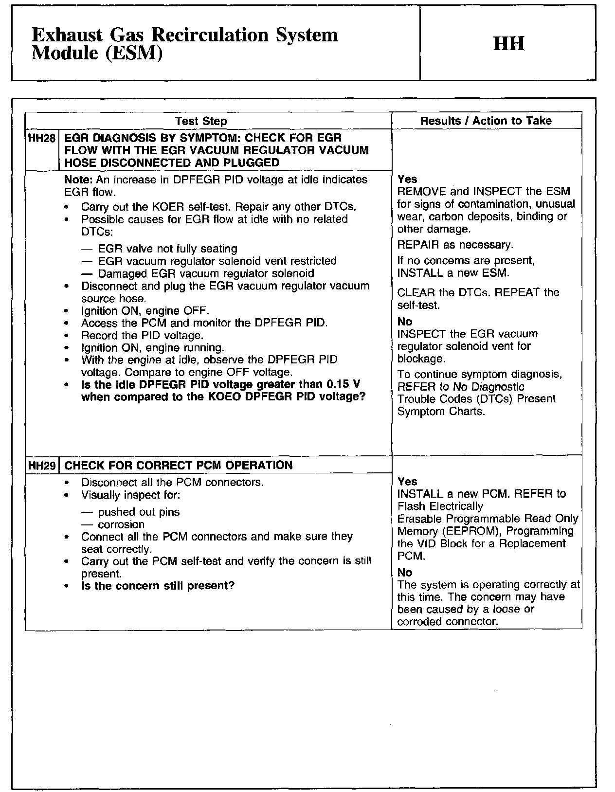 Home >> Ford >> 2009 >> Focus L4-2.0L >> Repair and Diagnosis >> Powertrain Management >> Computers and Control Systems >> Testing and Inspection >> Pinpoint Tests >> HH - Exhaust Gas Recirculation System Module (ESM)