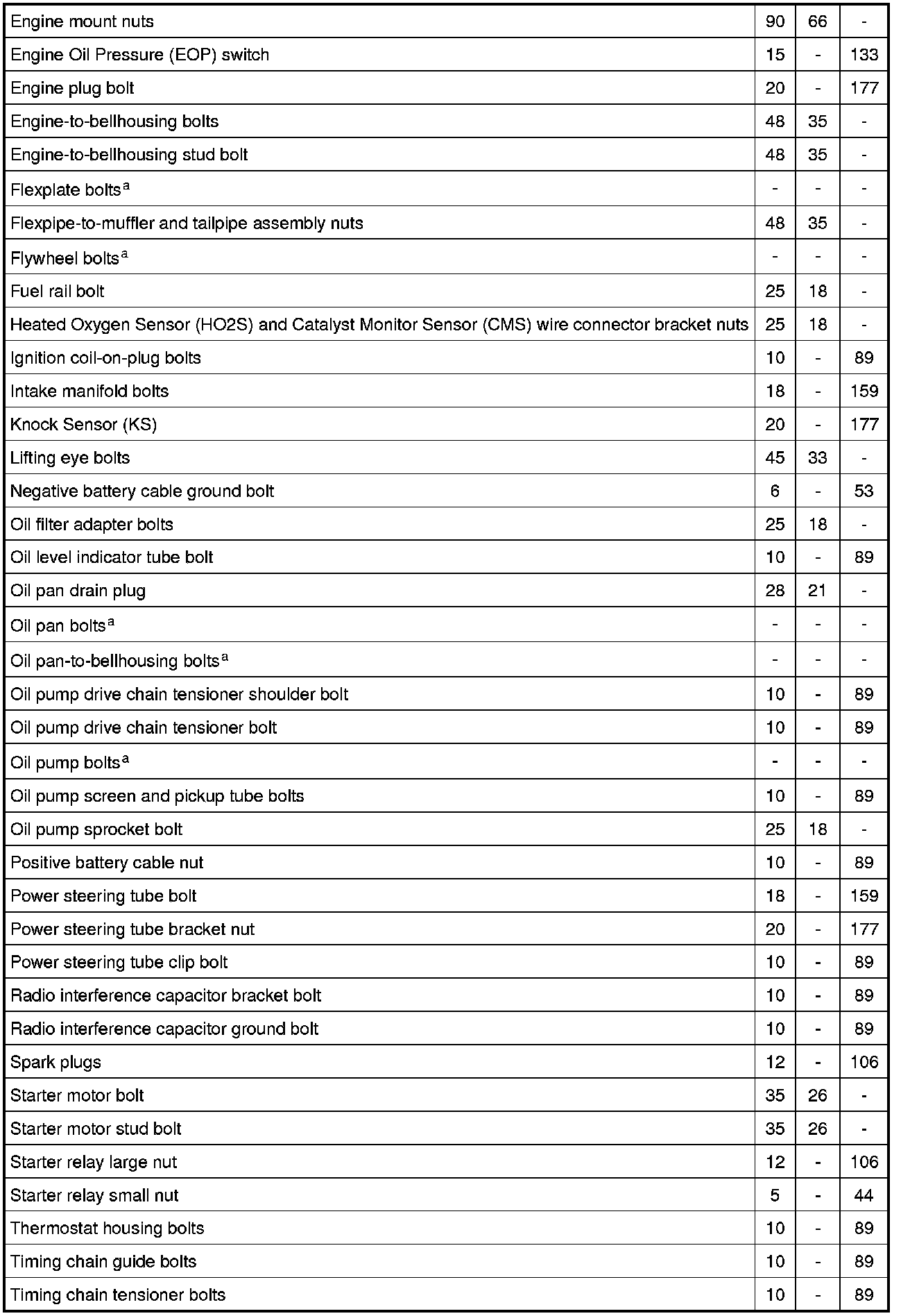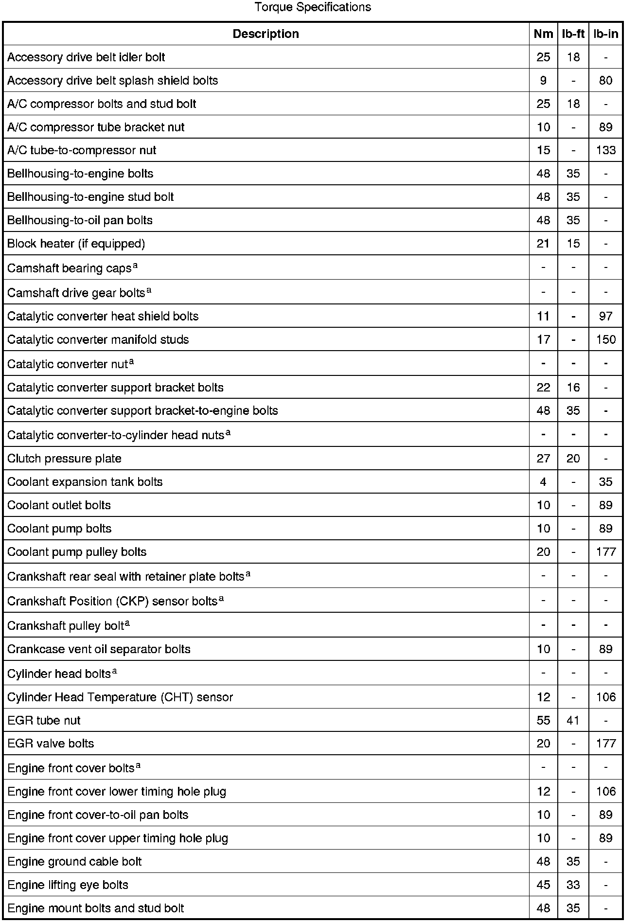Torque Specifications