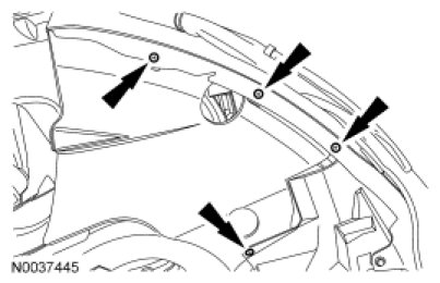 8. Remove the 4 screws and position the LH fender splash shield aside.