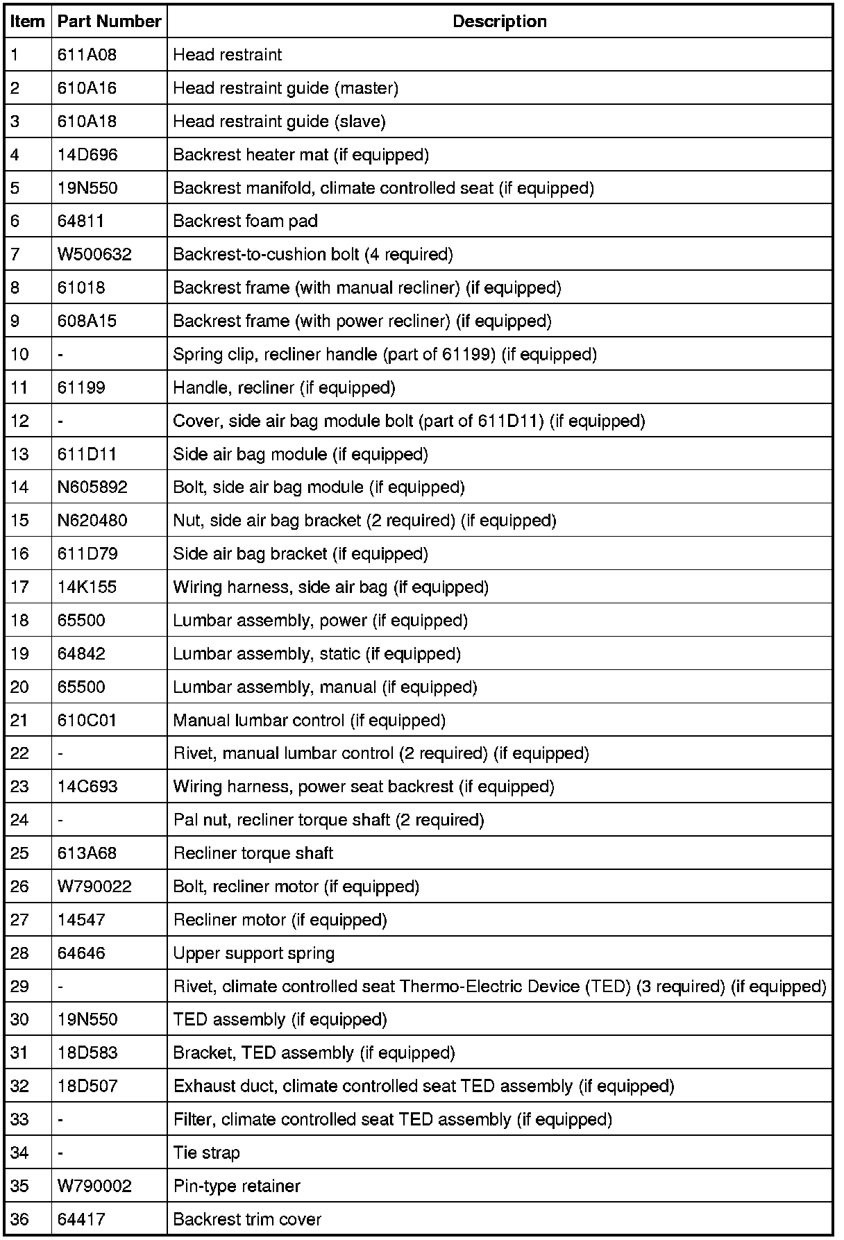 NOTE: Driver backrest shown, passenger backrest similar.