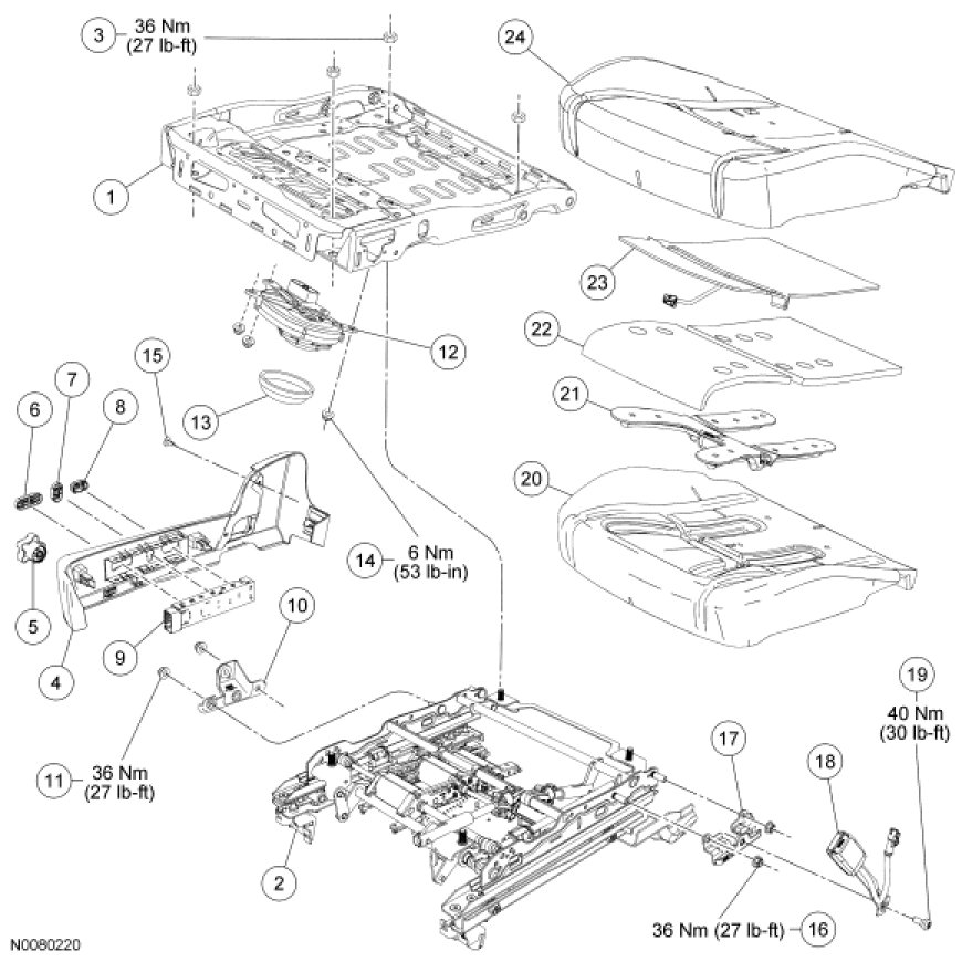 Home >> Ford >> 2009 >> Fusion FWD L4-2.3L >> Repair and Diagnosis >> Body and Frame >> Seats >> Seat Temperature Control Module >> Service and Repair >> Seat - Exploded View, Front