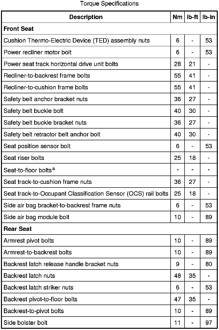 Seats: Specifications