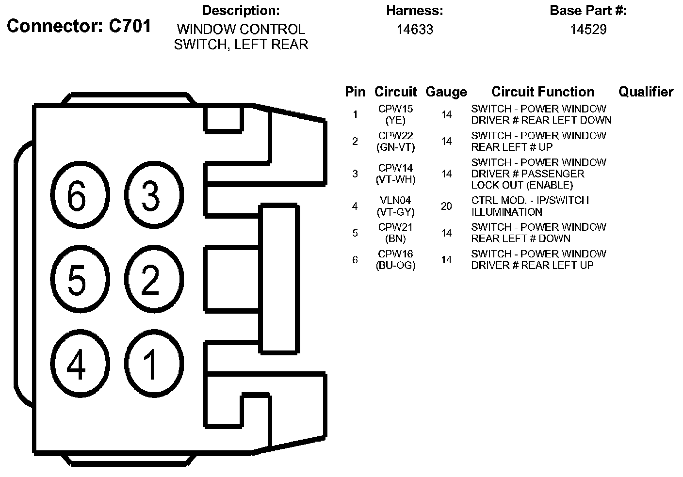 Window Control Switch, Left Rear