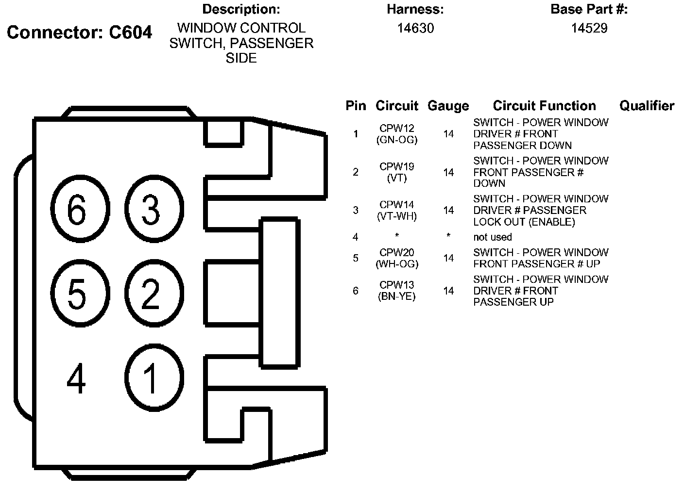Window Control Switch, Passenger Side