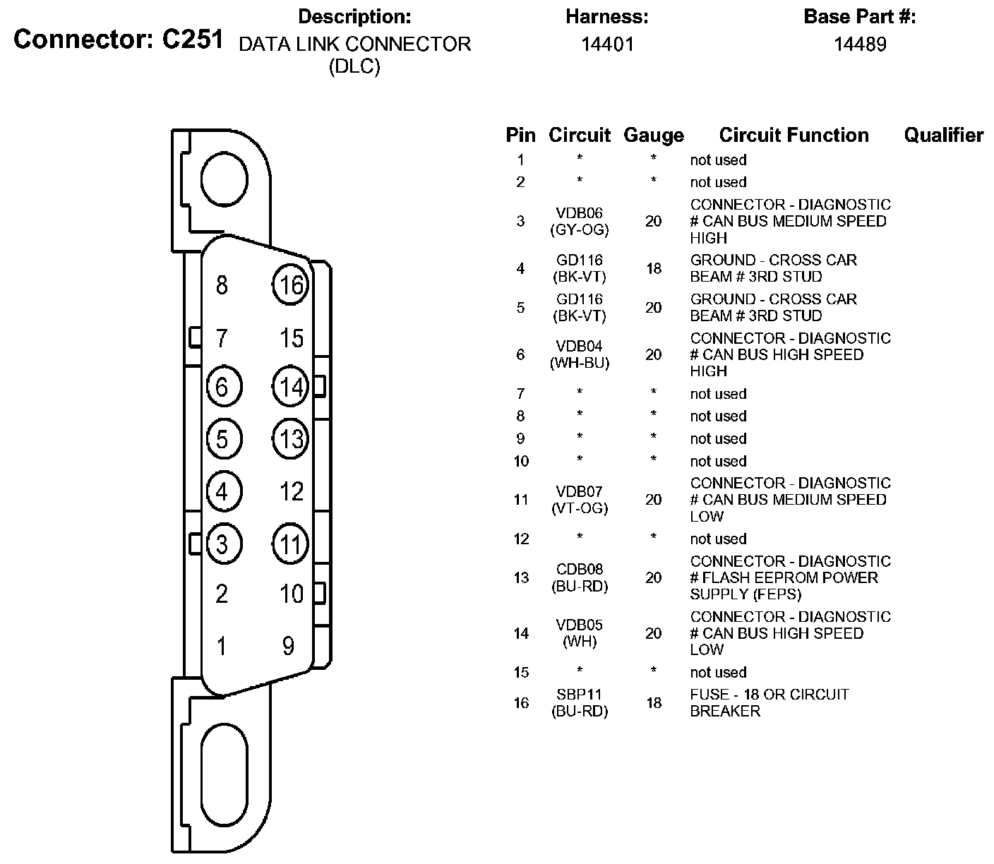 Data Link Connector: Diagrams
