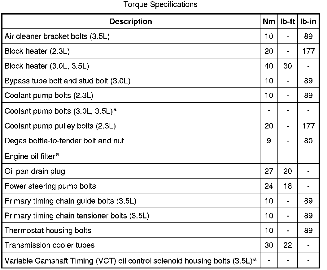 Torque Specifications