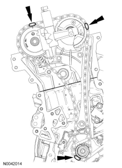 If timing marks in the timing chains are not evident, use a permanent-type marker to mark the crankshaft and camshaft timing marks on the LH and RH timing chains.