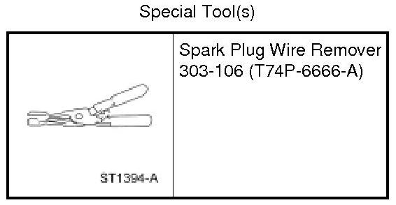 NOTICE: It is important to twist the spark plug wire boots while pulling upward, to avoid possible damage to the spark plug wire.