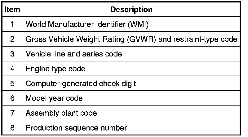 Positions 5 through 7 indicate vehicle line and series.