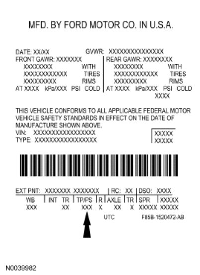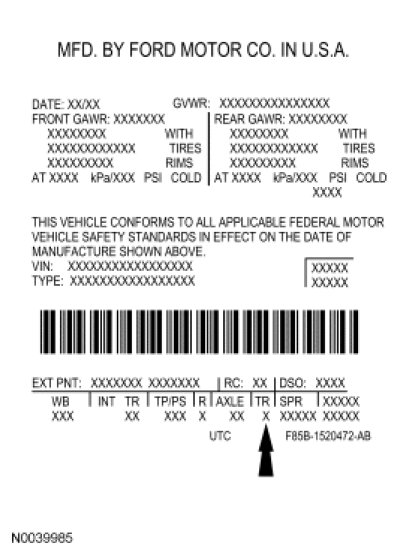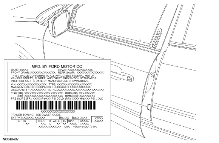 Vehicle Certification (VC) Label - Ford Taurus X