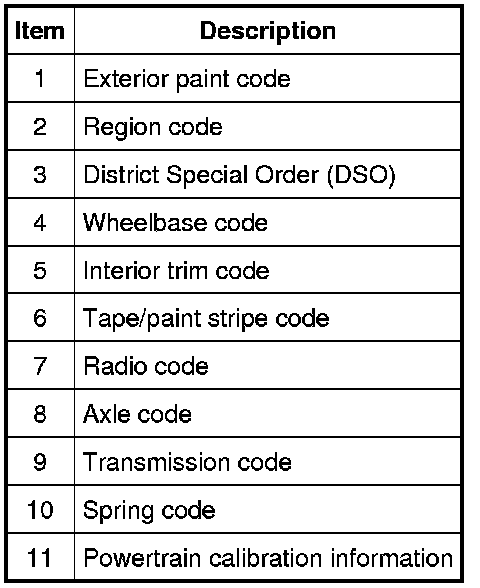 Powertrain calibration information is printed in the lower right corner of the VC. Only the base calibration information is printed. Revision levels will not appear, however, they can be obtained through a scan tool using the most current software revision.
