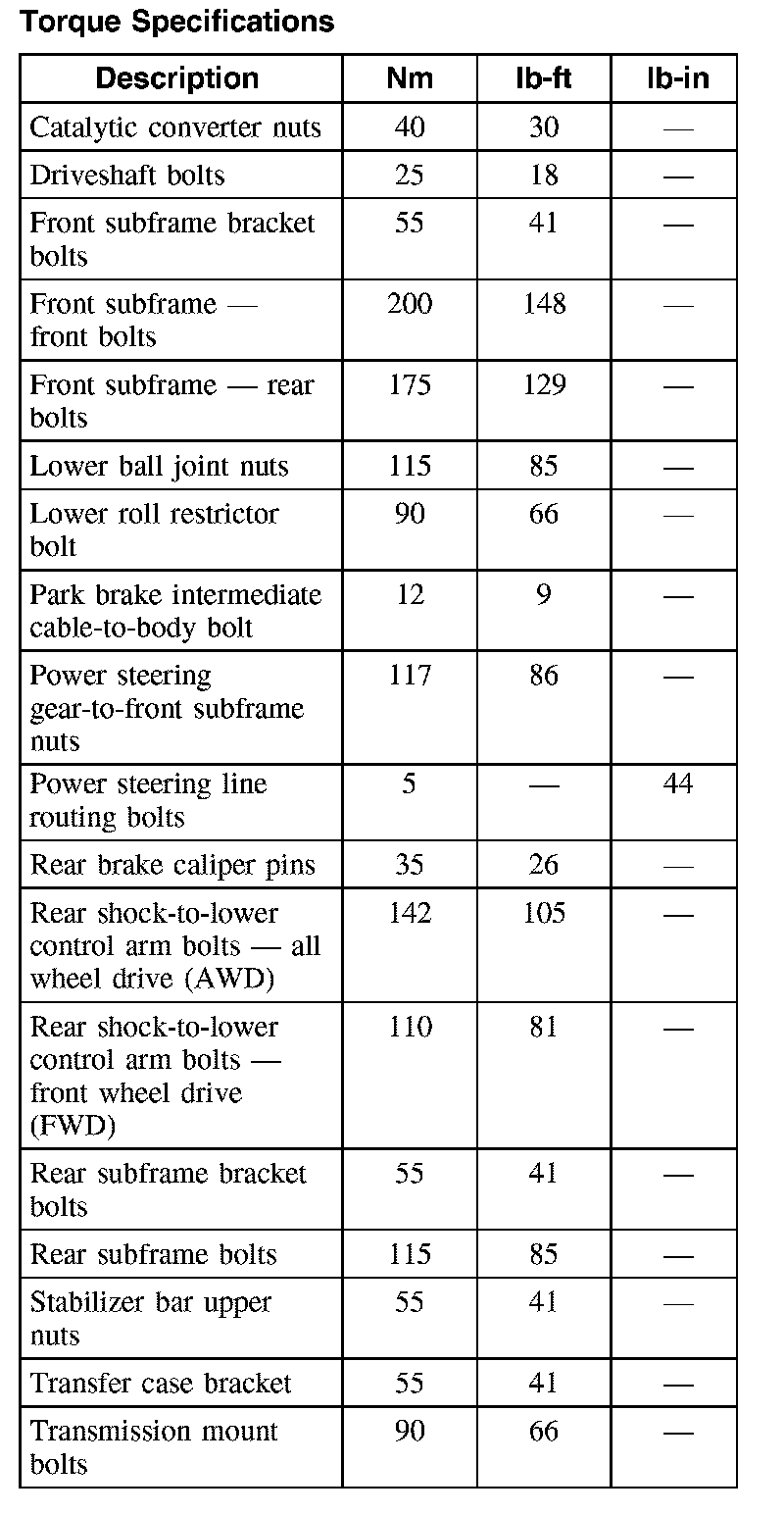 Torque Specifications: