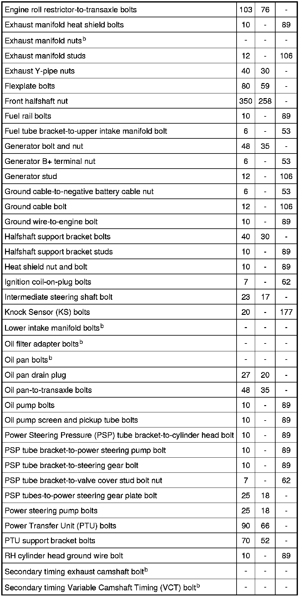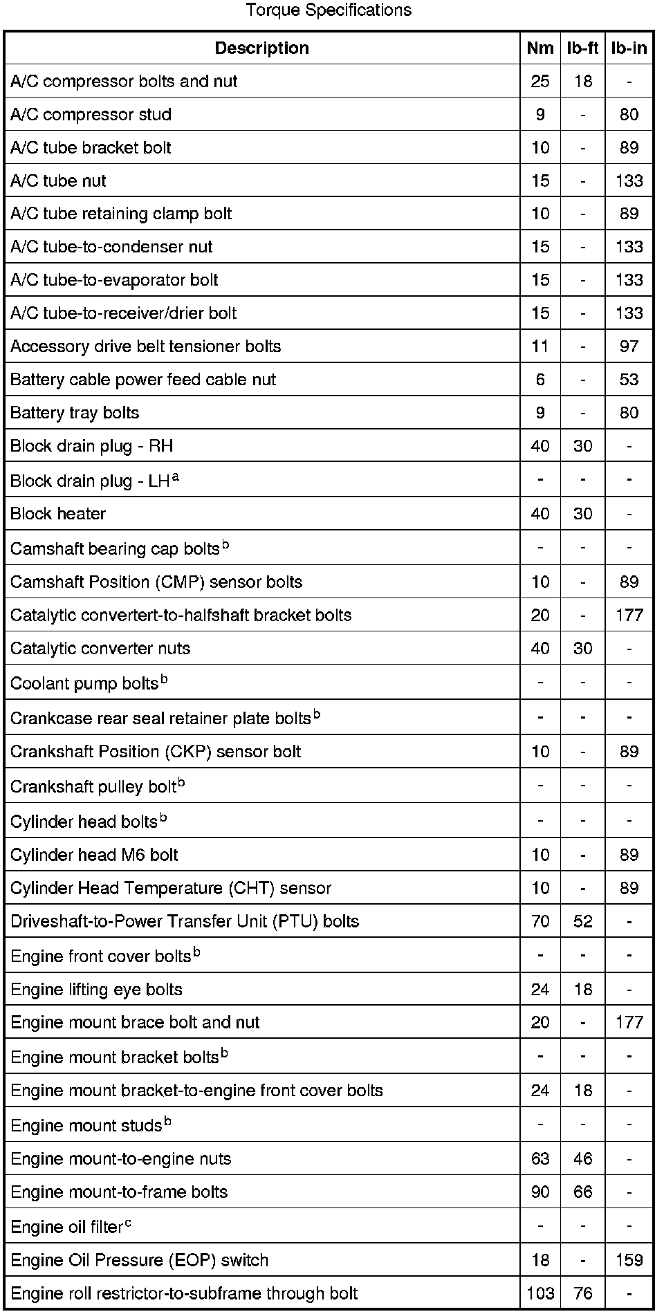 Torque Specifications